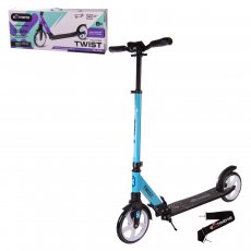 8. Двоколісний самокат Twist. Це модель для дітей віком від 8 років і старше. Алюмінієва рама може витримати велике навантаження. Поліуретанові колеса діаметром 20 см добре долають дрібні нерівності на дорогах. Завдяки фірмовому ременю переносити самокат буде ще простіше. Висоту керма можна регулювати – від 90 см до 104 см.