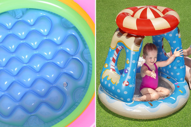 Надувні басейни з надувним дном для дитини вважаються комфортнішими для дитячих ніжок. Перебуваючи в такому басейні, дитина не відчуватиме ніжками нерівності на поверхні, на яку встановлено басейн. Варіанти з надувним дном ідеально підходять для немовлят та дітей дошкільного віку.